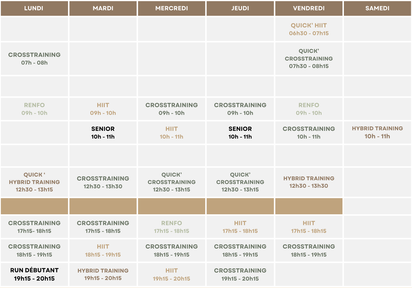 🔥 Bénéfices : développement de la force, de l'endurance, de l'agilité et du cardio.🕗 QUICK CROSSTRAINING : une version condensée du Crosstraining, d’une durée de 45 minutes au lieu d’1h.